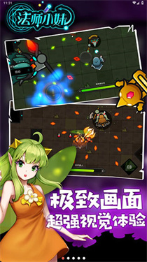 2、游戏操作简便,采用虚拟双摇杆模式,玩家负责控制角色移动、翻滚及释放技能。《法师小妹》还引入自动战斗功能,辅助玩家消灭关卡敌人和首领。