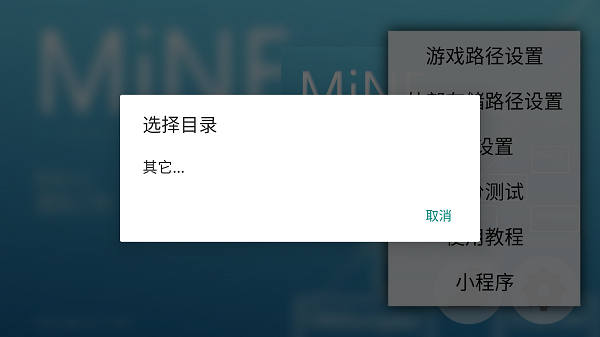 5、若需加载外置存储如SD卡中的游戏,点击齿轮图标打开菜单,选择外部存储路径设置,选择SD卡,然后浏览至游戏所在根目录,如MINE目录,点击选择。