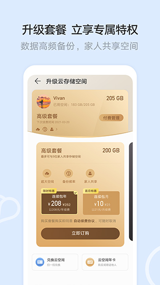 华为手机用户专享160G云存储空间,可根据需求升级更大存储方案。