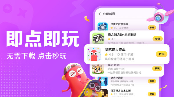 1、即点即玩小游戏秒开,用户无需等待下载和安装,快速进入游戏世界。