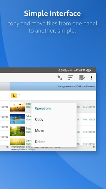 1. 双面板设计:用户可在两个独立文件夹中同步操作文件,实现文件的快速复制、移动,减少频繁切换文件夹的繁琐。